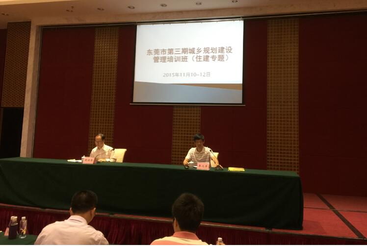 由中共东莞市委组织部、东莞市住房和城乡建设局共同主办,为期三天的第三期城乡规划建设管理培训班于2015年11月10日在东莞市建设培训中心举行。本次培训班共110人参加,其中包括各镇(街道)镇长(办事处主任)、会分管建设工作的领导、建设办(局)主任(局长)以及市住房和城乡建设局全体领导班子成员。