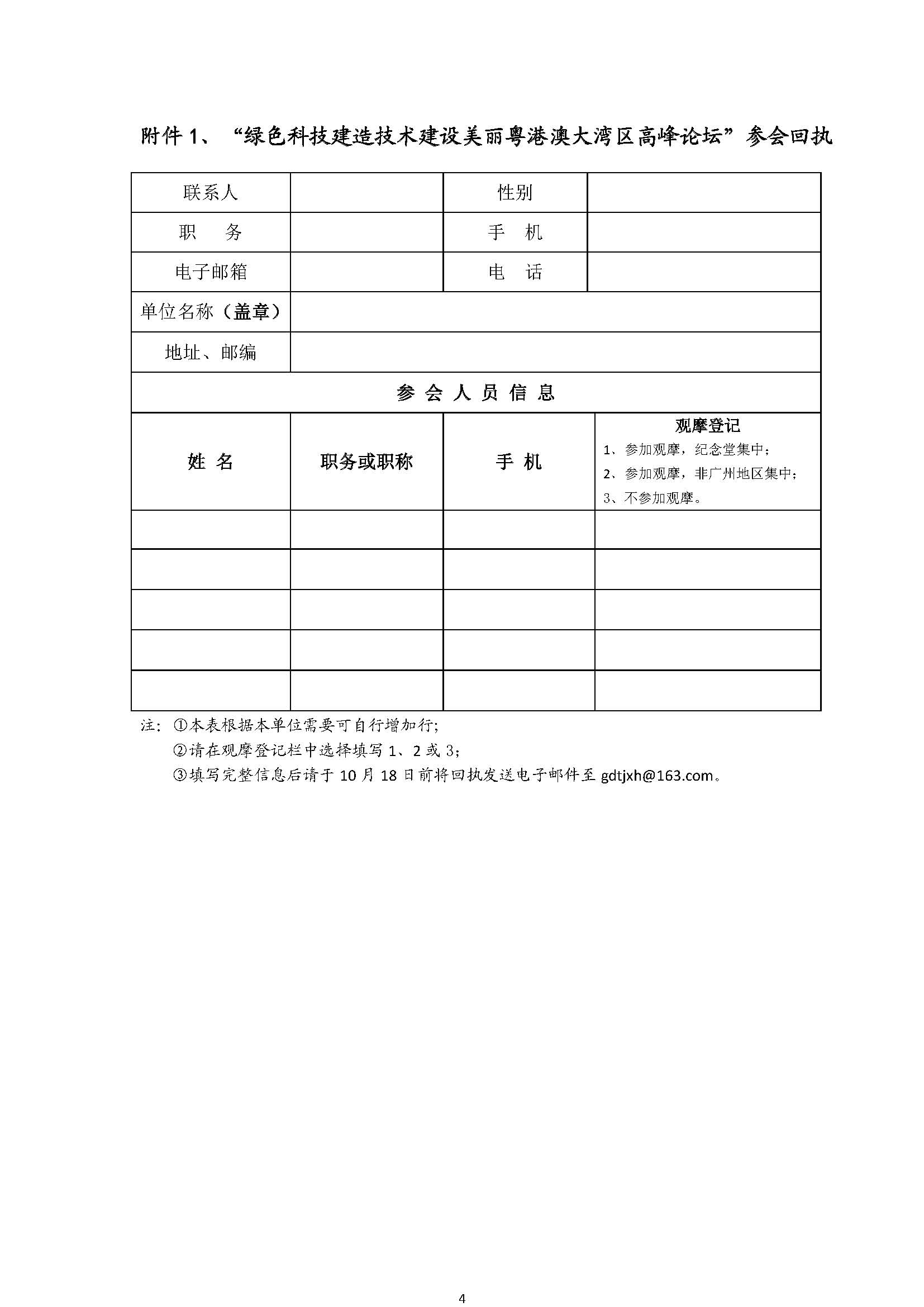 附件:“绿色科技建造技术建设美丽粤港澳大湾区高峰论坛”参会回执
