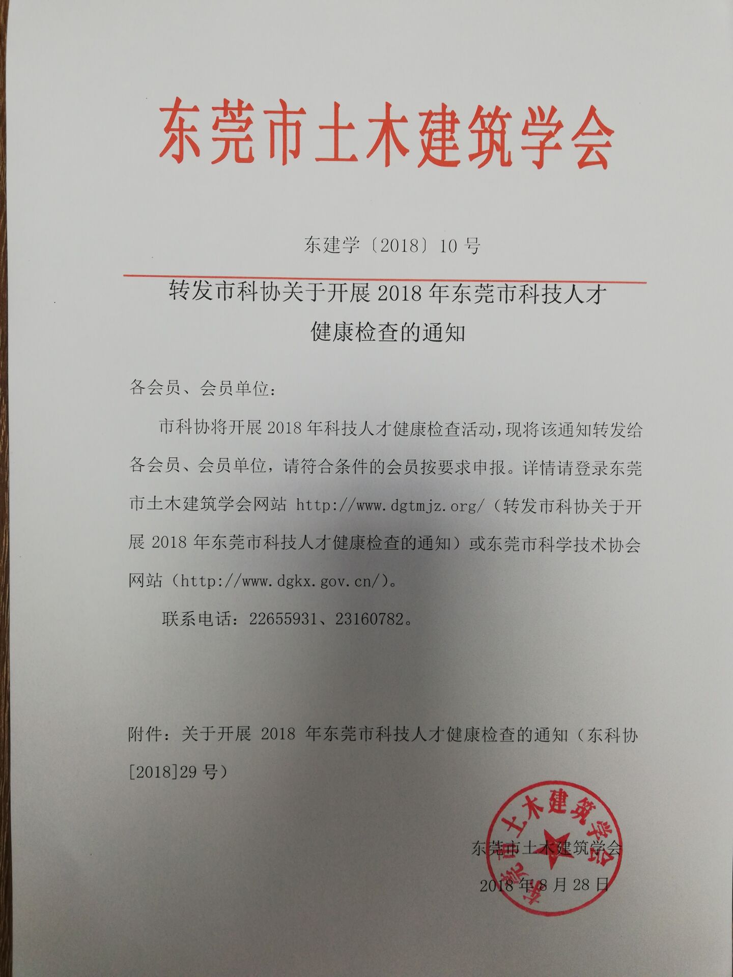 附件:关于开展2018年东莞市科技人才健康检查的通知(东科协【2018】29号)