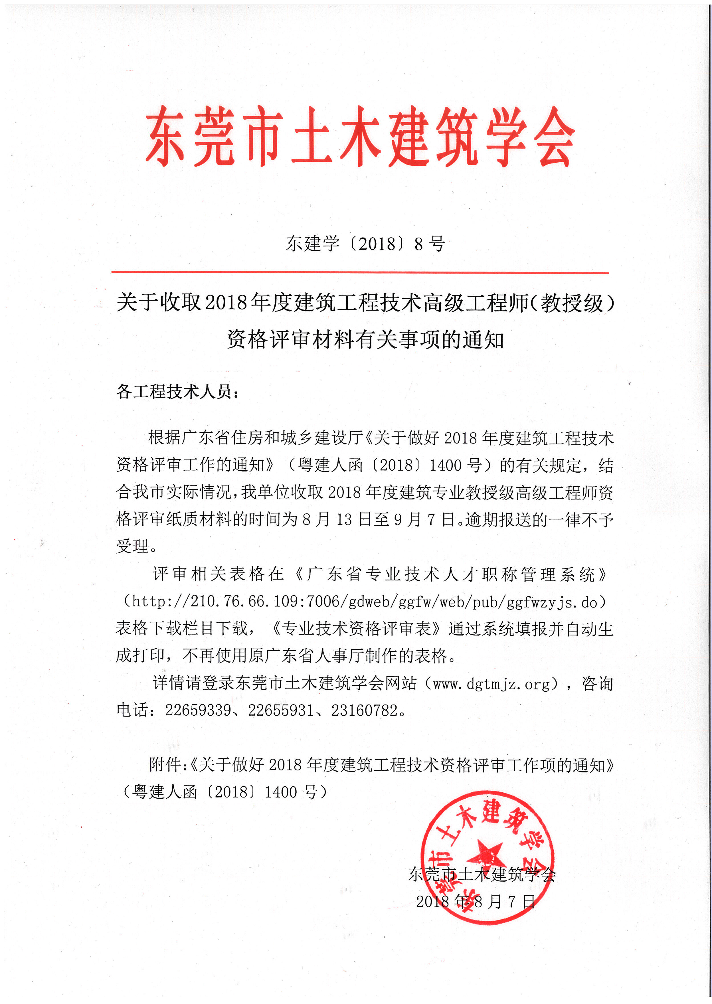 附件:1、《关于做好2018年度建筑工程技术资格评审工作项的通知》(粤建人函〔2018〕1400号)