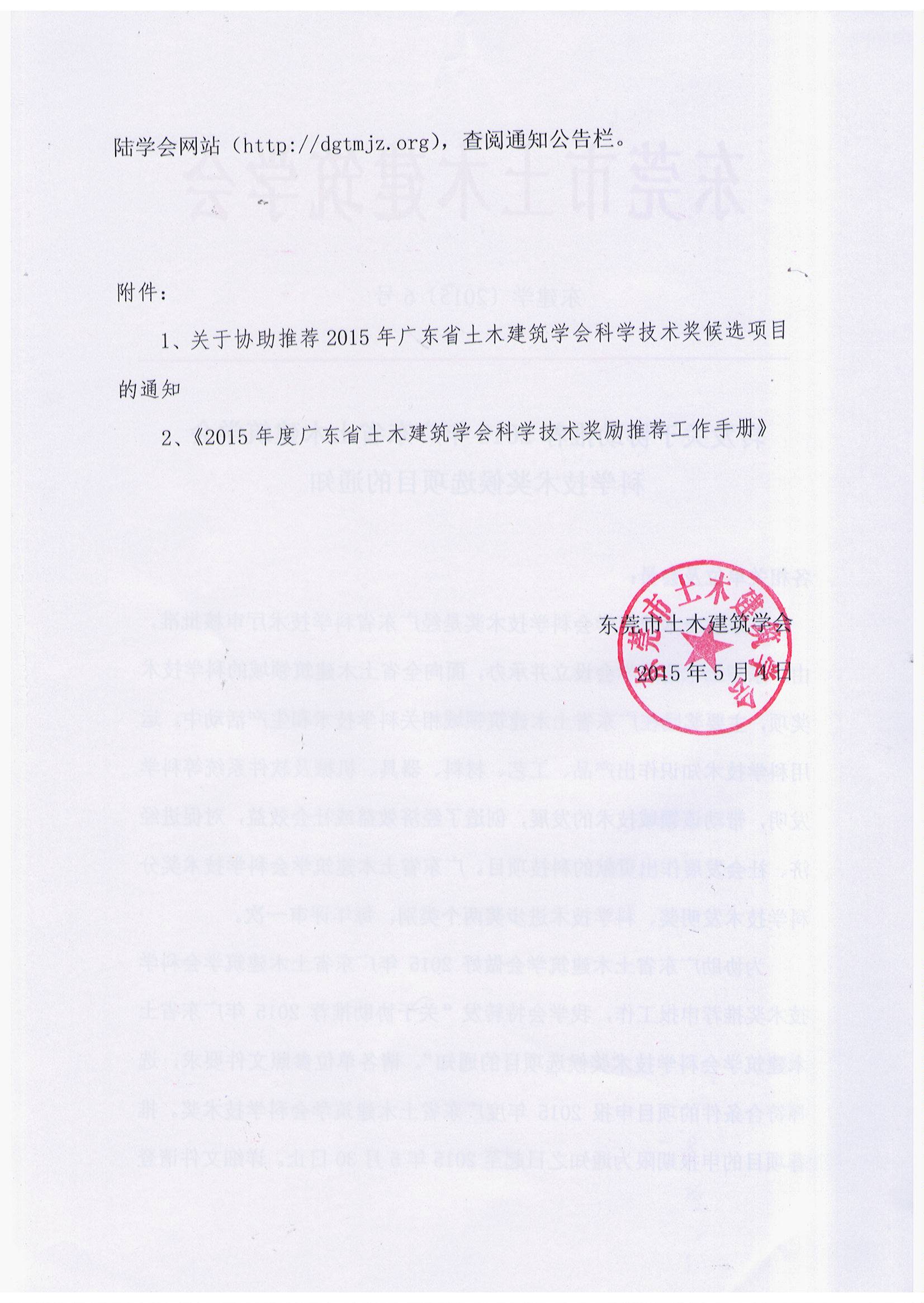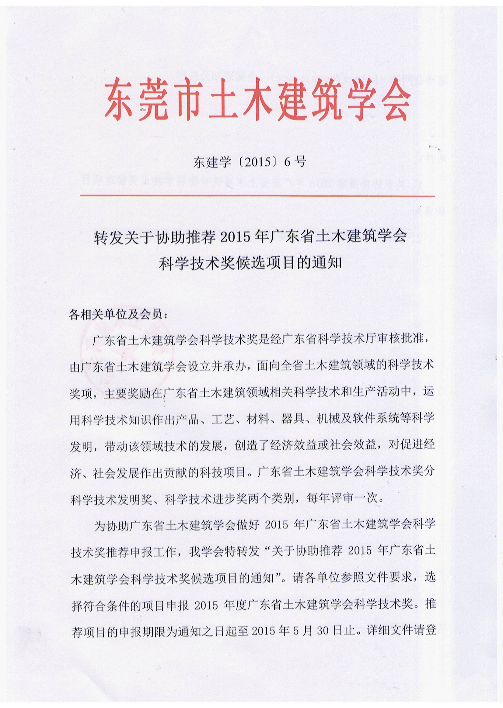 1.关于协助推荐2015年广东省土木建筑学会科学技术奖候选项目的通知