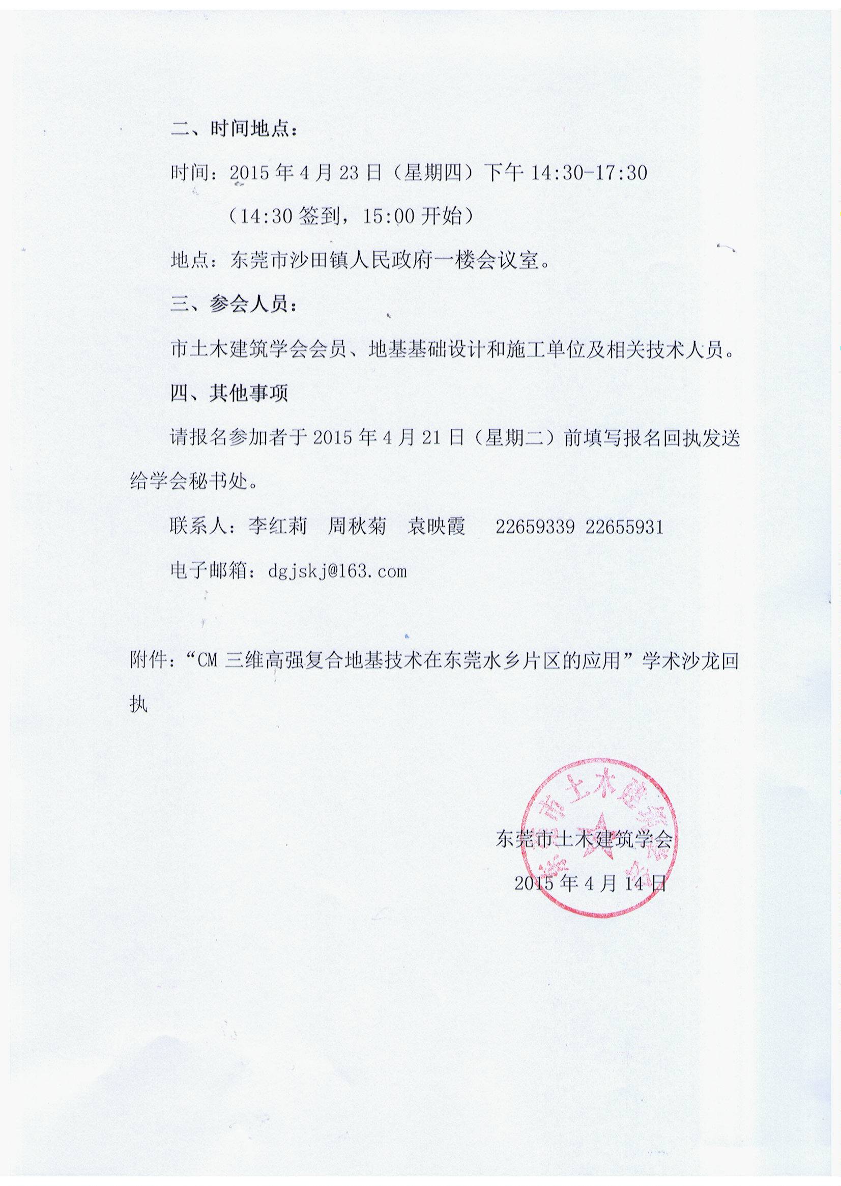 “CM三维高强复合地基技术在东莞水乡片区的应用”学术沙龙回执