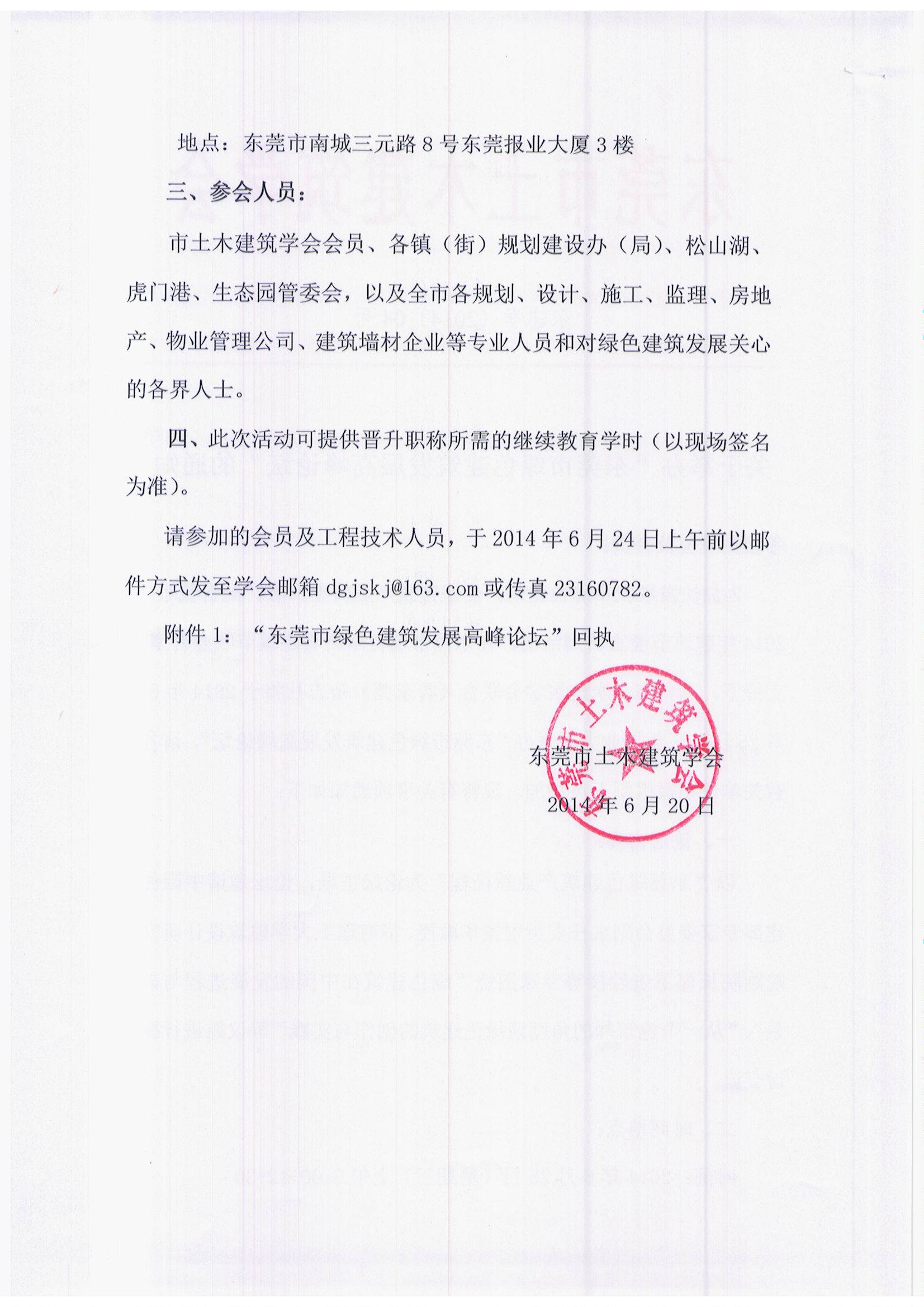 附:关于举办东莞市绿色建筑发展高峰论坛的通知(东建学201404号文)